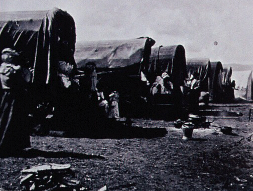 A Boer refugee laager. It is not clear whether this is one of the trekking laagers of women and children who were always on the move in an effort to try and escape capture by the British collumns, or whether this is a laager after capture. It may have been the latter case, since this picture was also indicated to have been taken at De Jagersdrift.